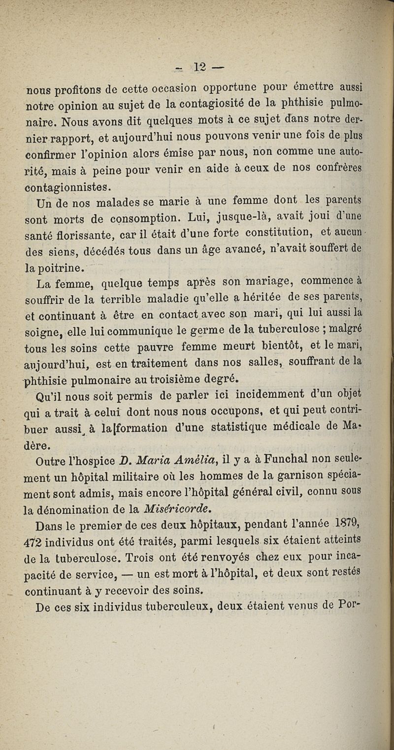 Paris : Impr. de A. ParentL'Année médicale de l'hospice de la princesse D. Maria Amelia à Funchal (île Madère) -- rapport adressé au conseil d'administration du même hospice pour l'année 1879, par C. A. Mourao-Pitta ...,
