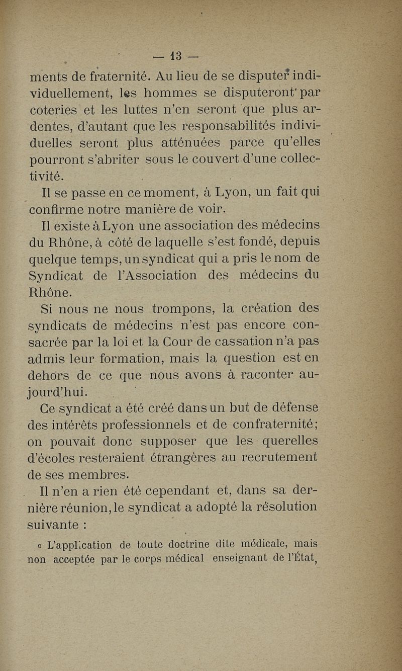 Intolérance médicale (an 1886)
