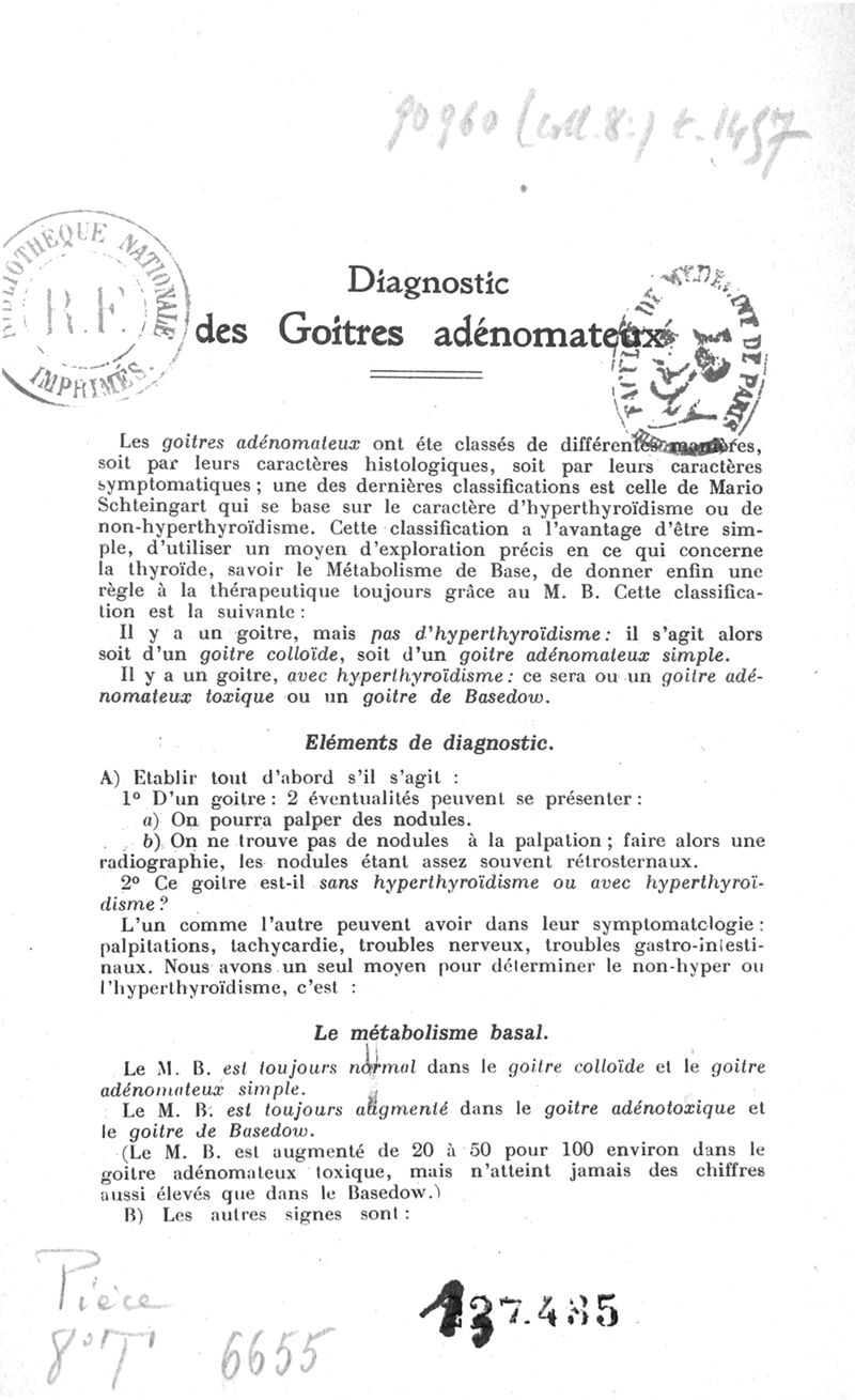 Diagnostic et traitement des goîtres adénomateux