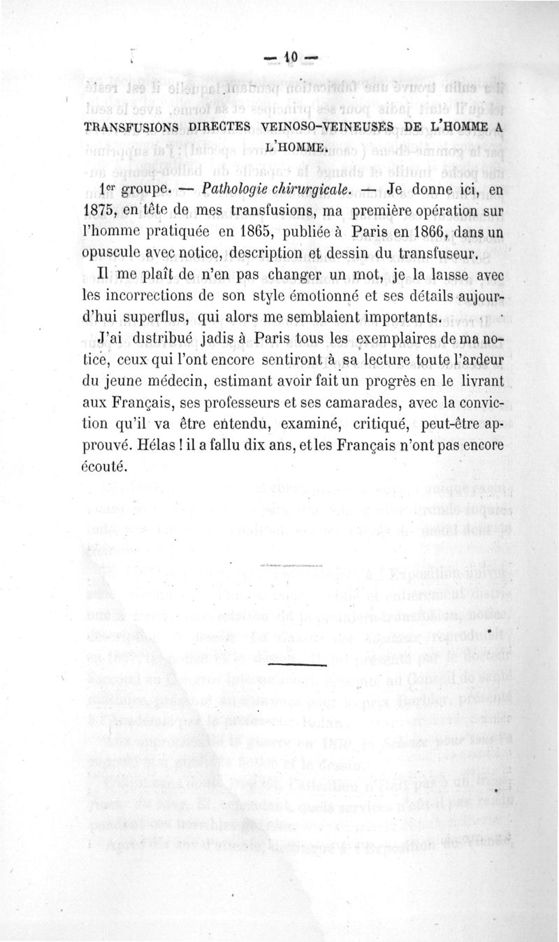 La transfusion. 1re série. 35 opérations
