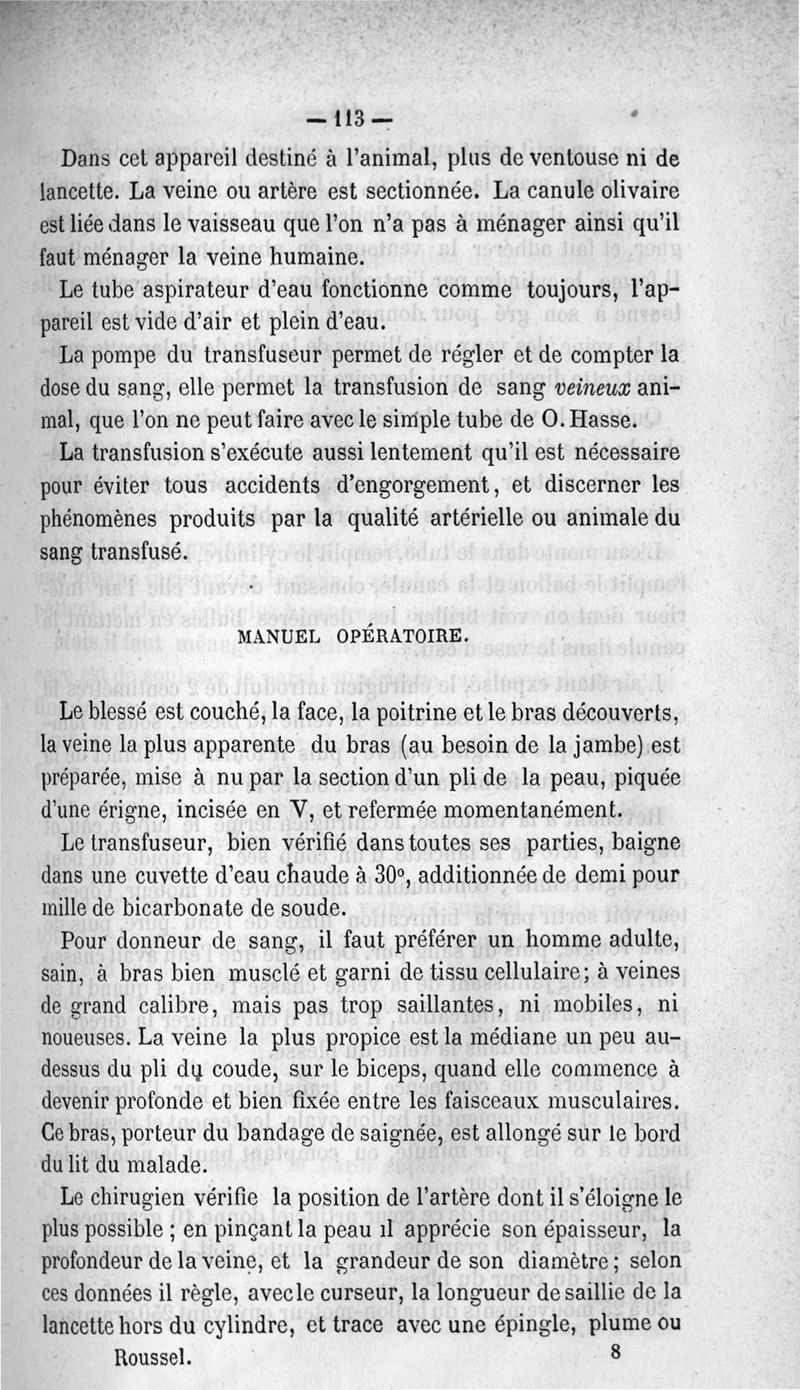 La transfusion. 1re série. 35 opérations