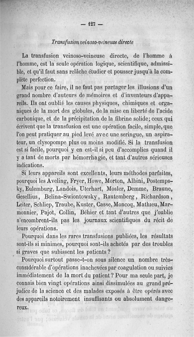 La transfusion. 1re série. 35 opérations