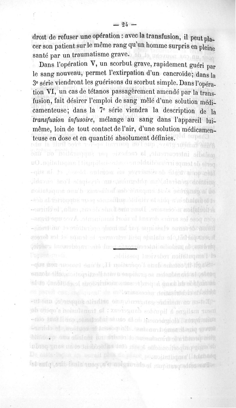 La transfusion. 1re série. 35 opérations
