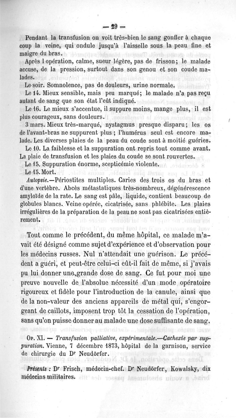 La transfusion. 1re série. 35 opérations