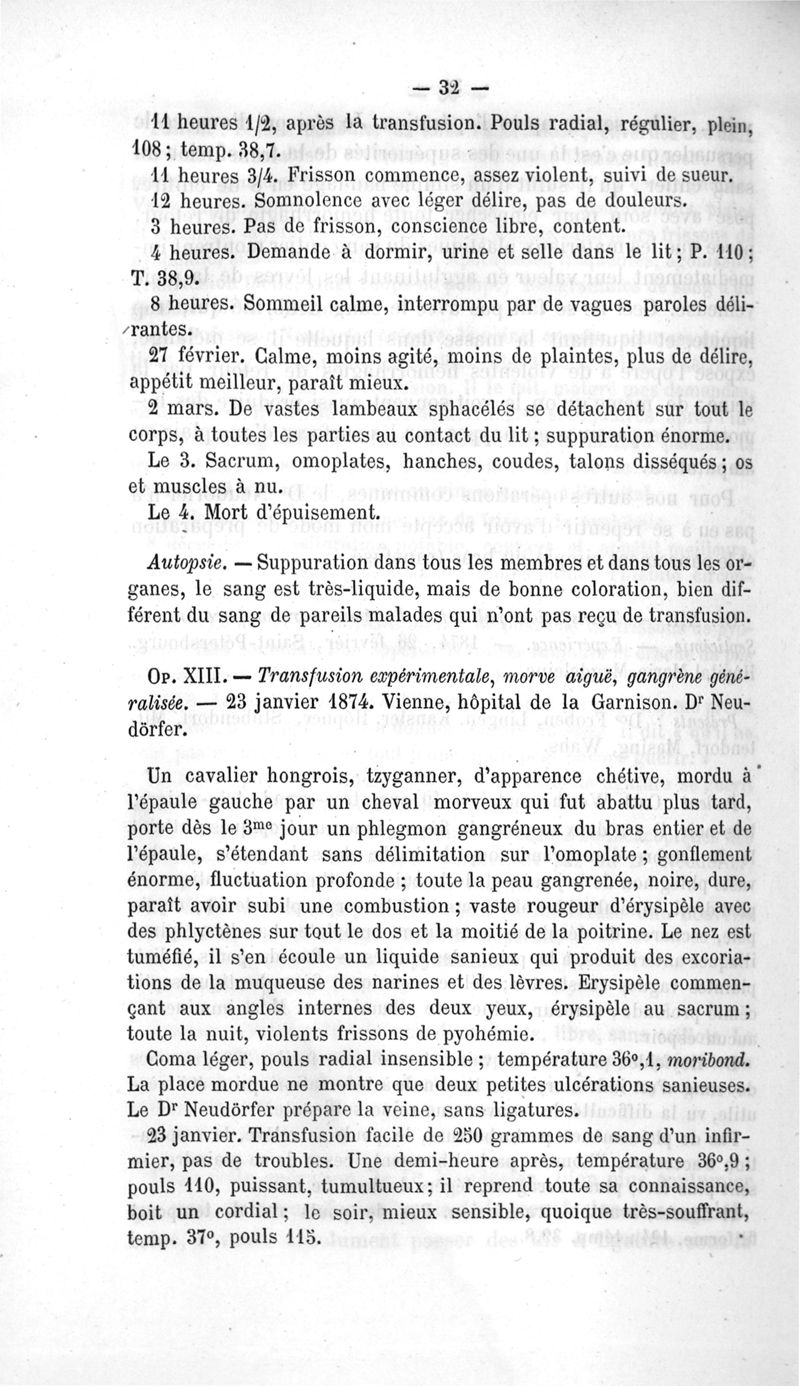 La transfusion. 1re série. 35 opérations