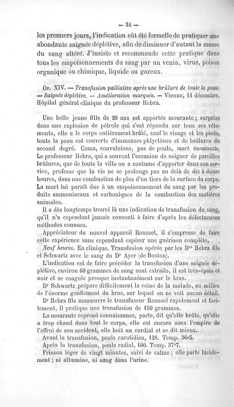 La transfusion. 1re série. 35 opérations