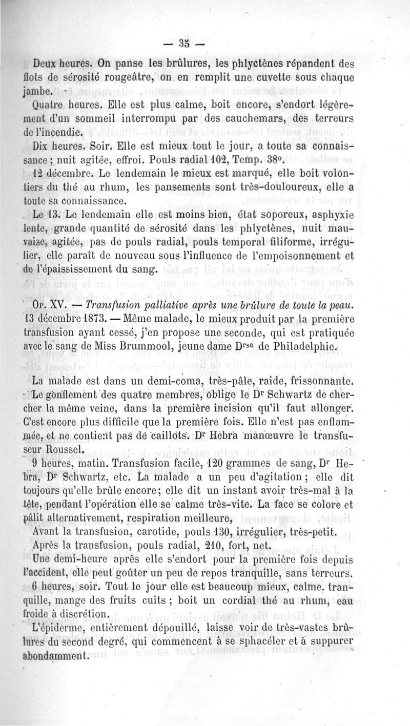 La transfusion. 1re série. 35 opérations