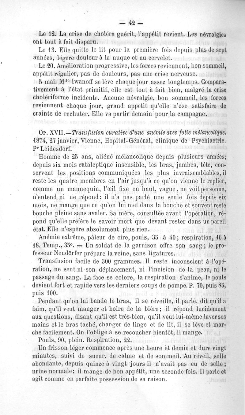 La transfusion. 1re série. 35 opérations