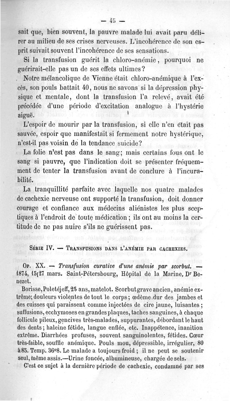 La transfusion. 1re série. 35 opérations