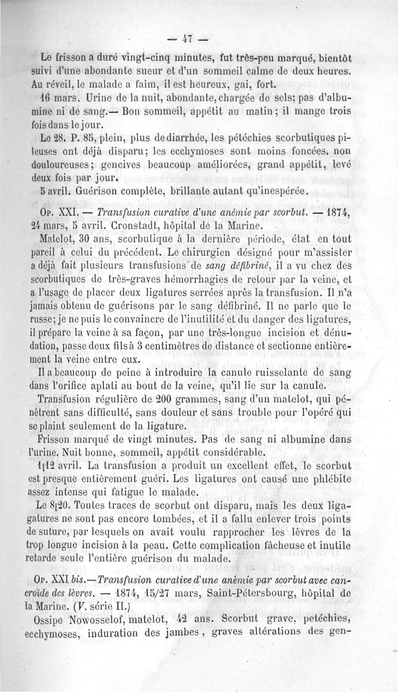 La transfusion. 1re série. 35 opérations