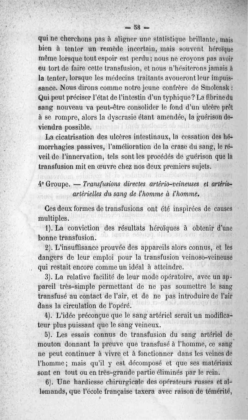 La transfusion. 1re série. 35 opérations