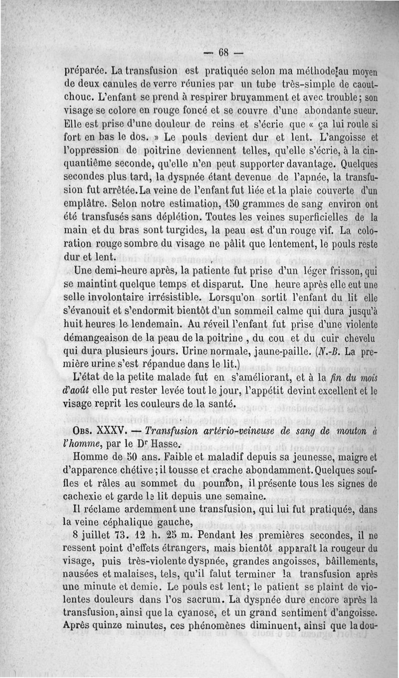 La transfusion. 1re série. 35 opérations