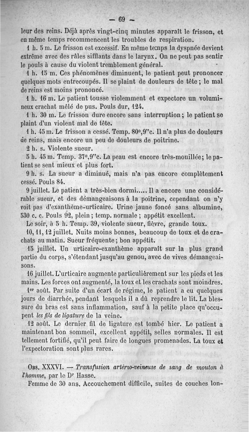 La transfusion. 1re série. 35 opérations
