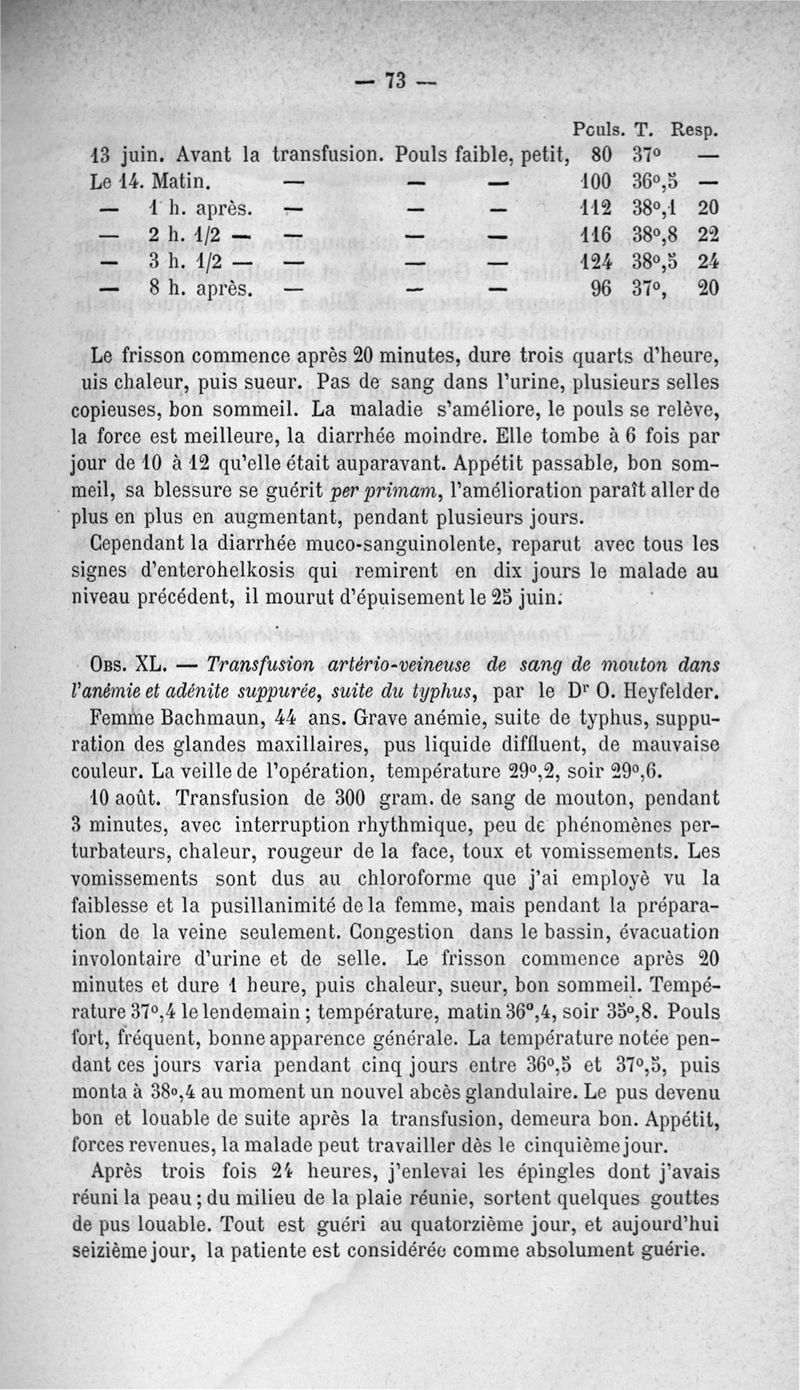 La transfusion. 1re série. 35 opérations