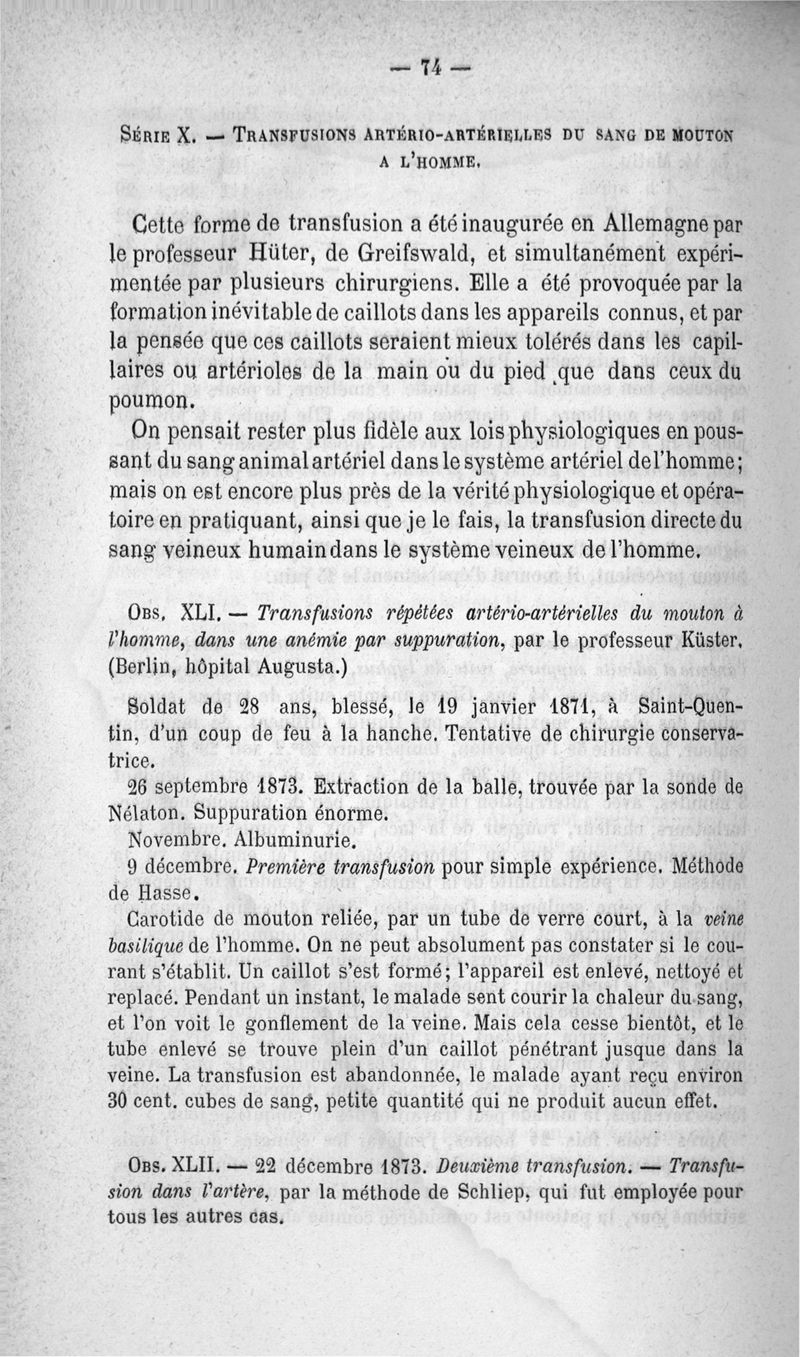 La transfusion. 1re série. 35 opérations