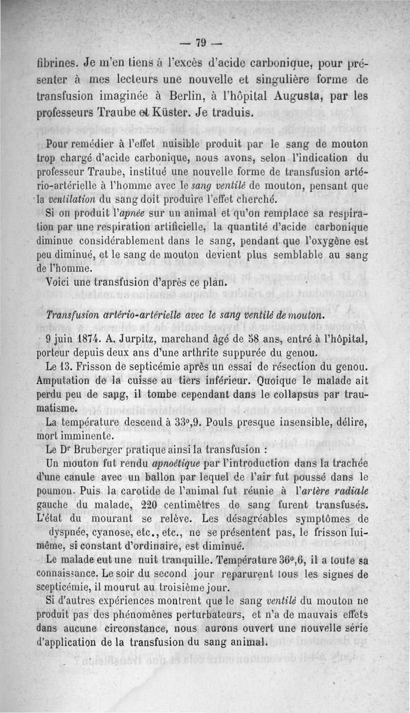 La transfusion. 1re série. 35 opérations