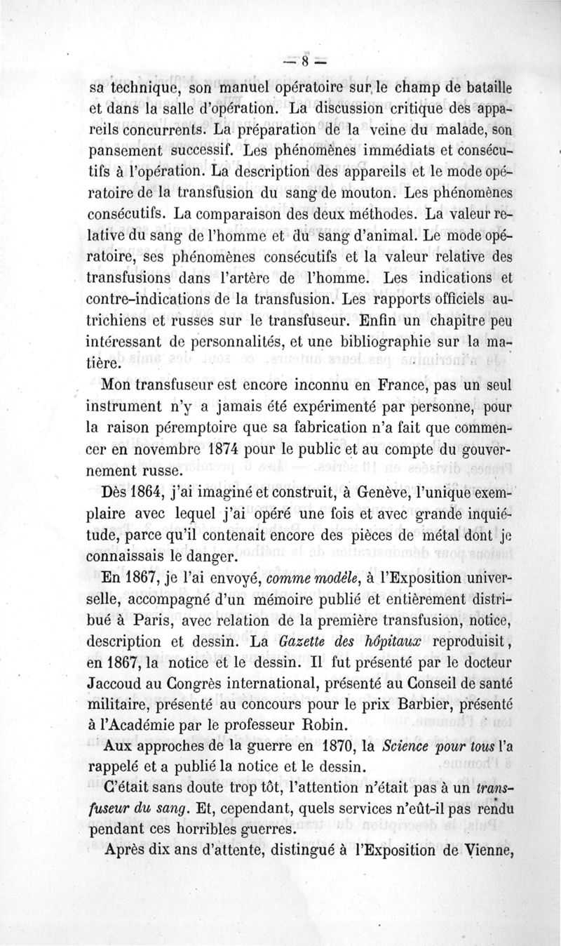 La transfusion. 1re série. 35 opérations