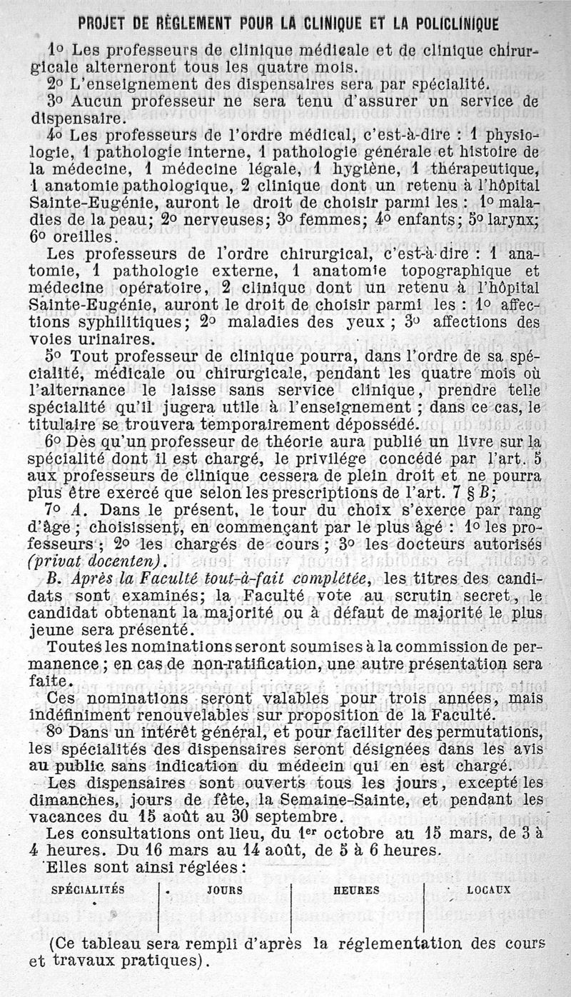 Réforme dans l'enseignement clinique. Des ressources hospitalières de Lille. Clinique et Policlinique. Projet d'organisation