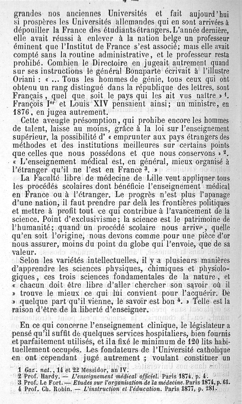 Réforme dans l'enseignement clinique. Des ressources hospitalières de Lille. Clinique et Policlinique. Projet d'organisation