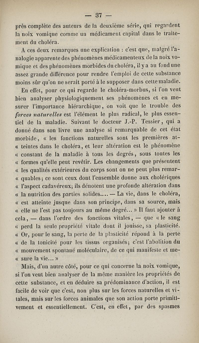 Thérapeutique expérimentale : étude sur les effets et les indications de la strychnine et de la noix vomique dans le traitement du choléra, suivie d'une réponse aux sophismes d'un adversaire