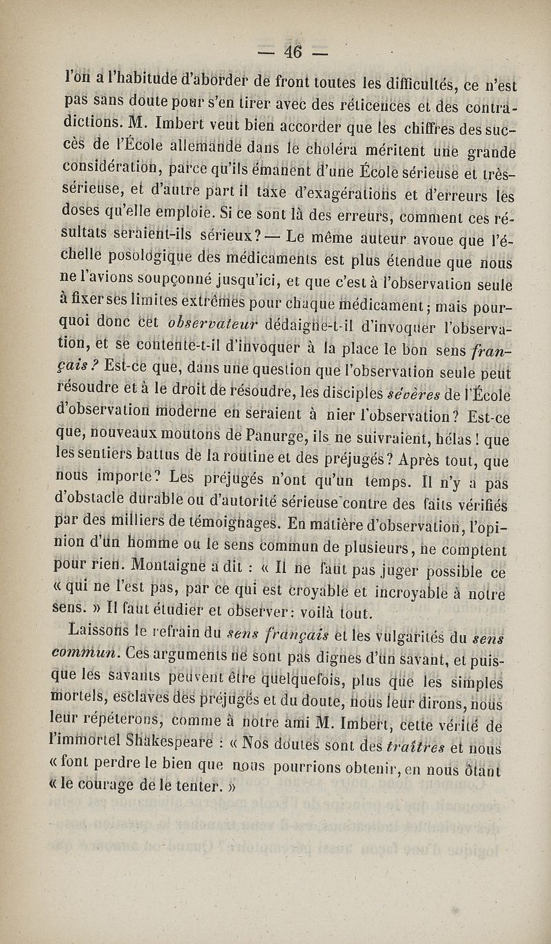 Thérapeutique expérimentale : étude sur les effets et les indications de la strychnine et de la noix vomique dans le traitement du choléra, suivie d'une réponse aux sophismes d'un adversaire