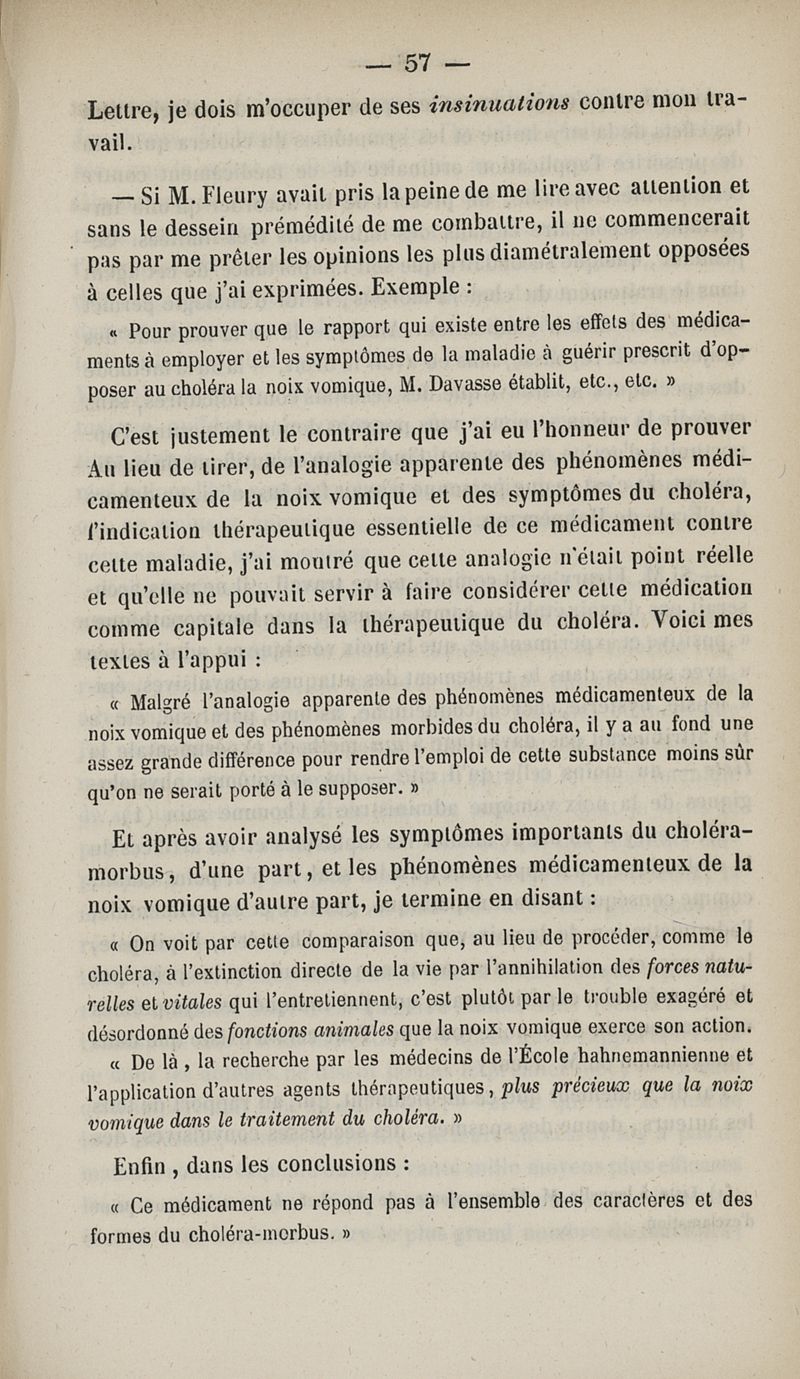 Thérapeutique expérimentale : étude sur les effets et les indications de la strychnine et de la noix vomique dans le traitement du choléra, suivie d'une réponse aux sophismes d'un adversaire