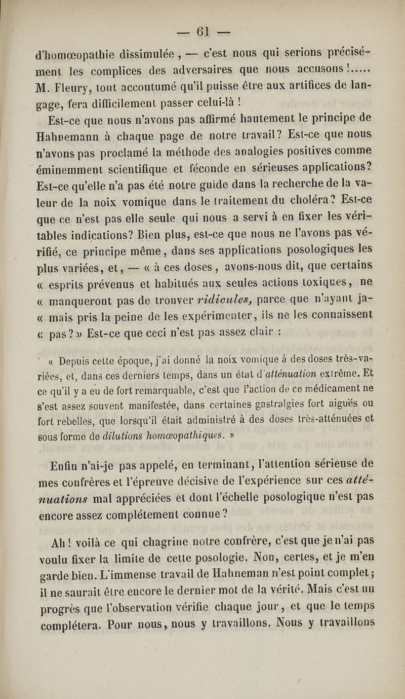 Thérapeutique expérimentale : étude sur les effets et les indications de la strychnine et de la noix vomique dans le traitement du choléra, suivie d'une réponse aux sophismes d'un adversaire