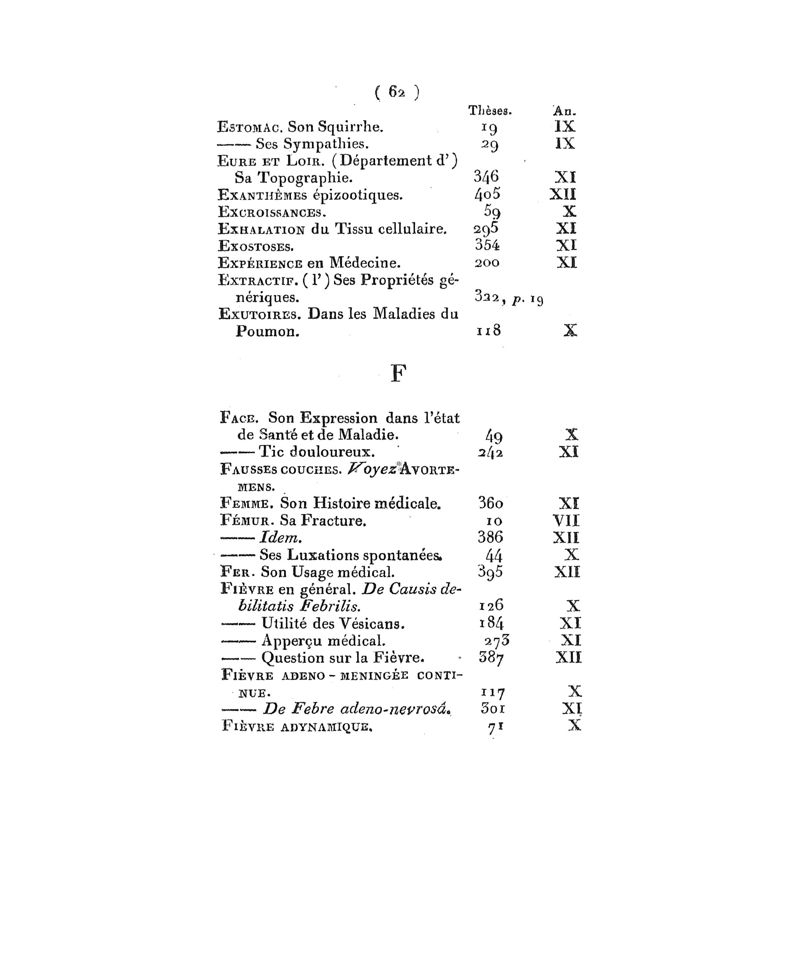 Tables chronologiques et alphabétiques des thèses in-8° soutenues à l'Ecole de médecine de Paris…. Depuis le 28 frimaire an VII, jusques et compris le 6 floréal an XII … Rédigées par P. Suë…