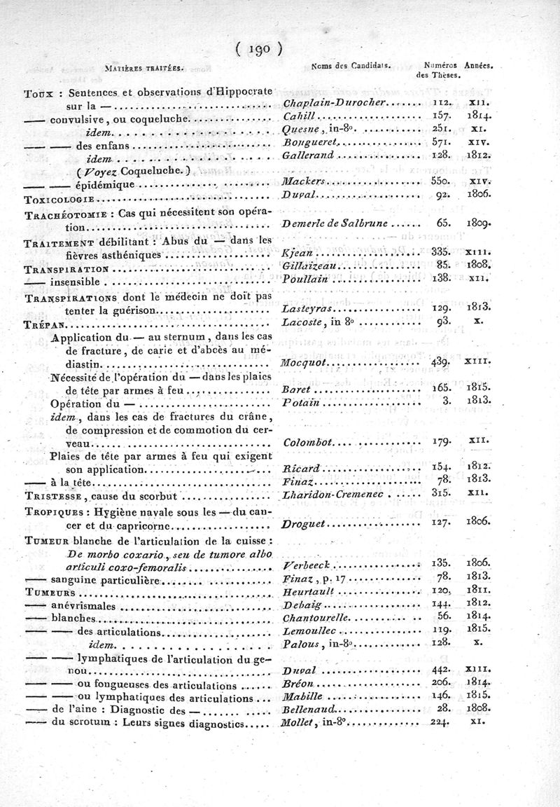 Table générale des thèses soutenues à la Faculté de médecine de Paris depuis le 28 frimaire an VII (17 décembre 1798) jusqu'au 1er janvier 1816, rédigée par M. Debraux…