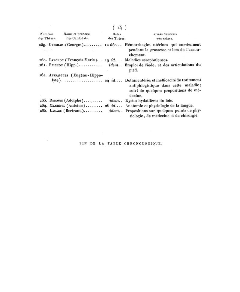 Tables (la Ière chronologique et les deux autres alphabétiques) des thèses soutenues à la Faculté de Médecine de Paris, dans le cours de 1828, rédigées par M. Veret…