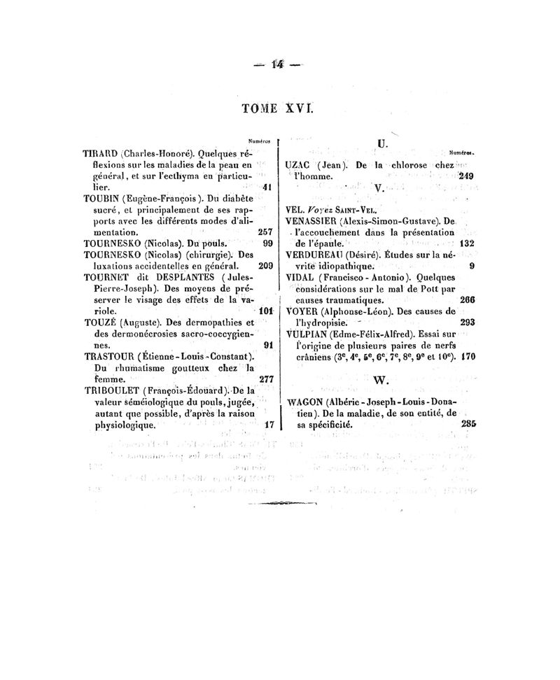 Tables (la première des noms des auteurs, et la seconde des matières) des thèses soutenues à la Faculté de Médecine de Paris, en 1853