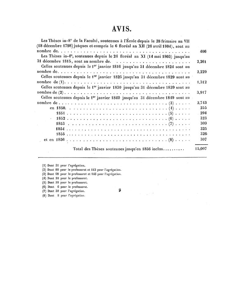 Tables (la première des noms des auteurs, et la seconde des matières) des thèses soutenues à la Faculté de Médecine de Paris, en 1856