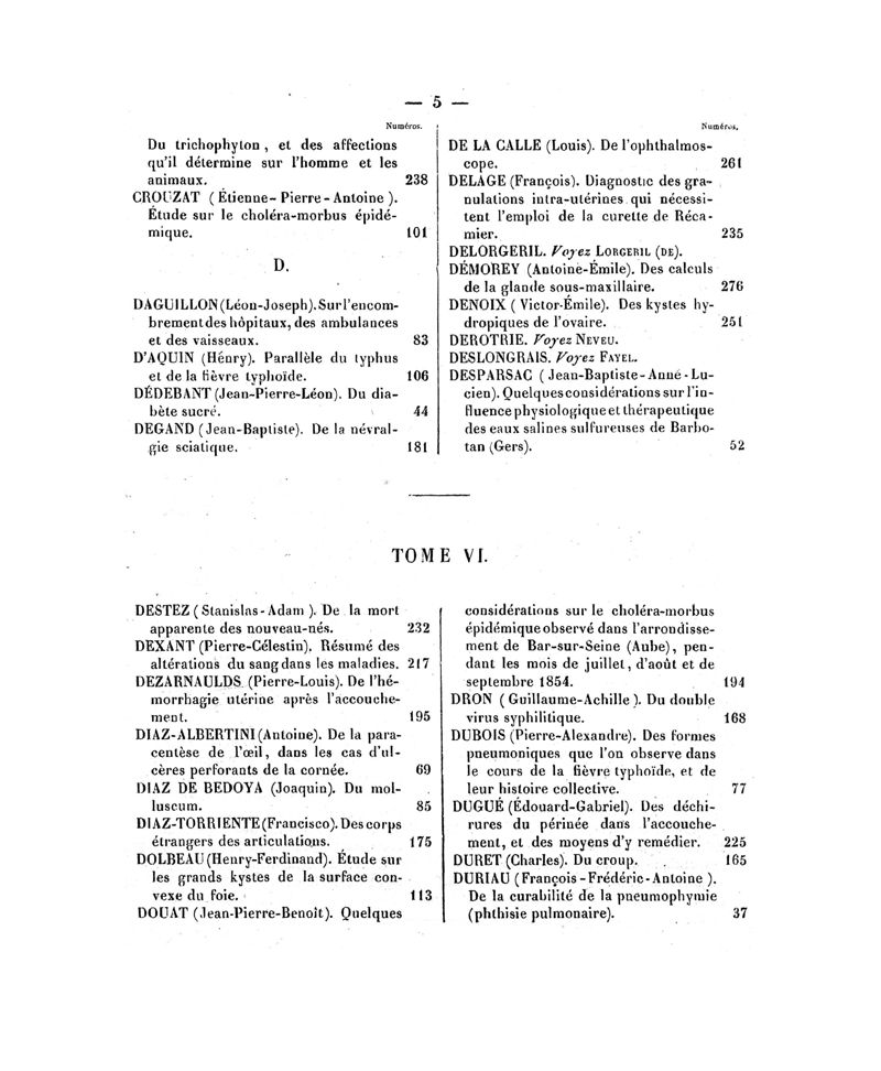 Tables (la première des noms des auteurs, et la seconde des matières) des thèses soutenues à la Faculté de Médecine de Paris, en 1856