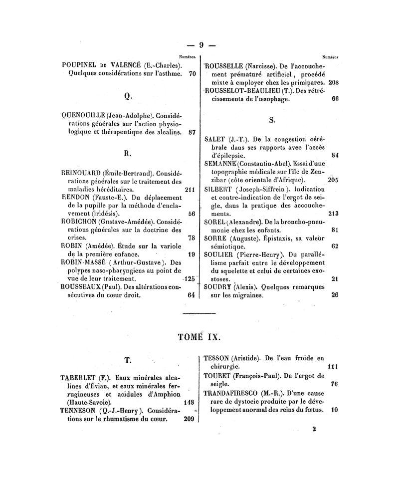 Tables (la première des noms des auteurs, et la seconde des matières) des thèses soutenues à la Faculté de Médecine de Paris, en 1864