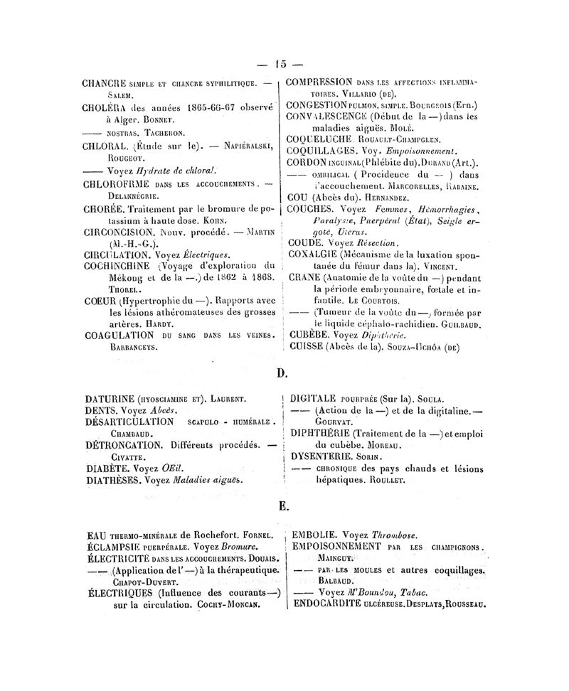 Tables (la première des noms des auteurs, et la seconde des matières) des thèses soutenues à la Faculté de Médecine de Paris, en 1870