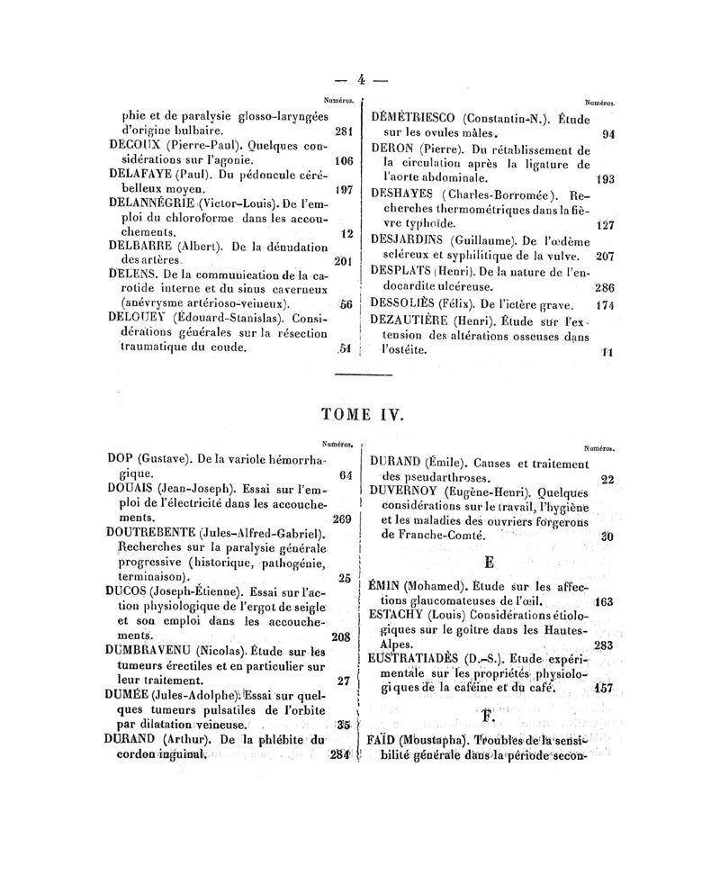 Tables (la première des noms des auteurs, et la seconde des matières) des thèses soutenues à la Faculté de Médecine de Paris, en 1870