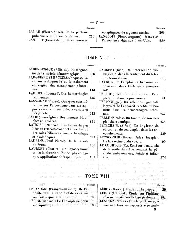 Tables (la première des noms des auteurs, et la seconde des matières) des thèses soutenues à la Faculté de Médecine de Paris, en 1870