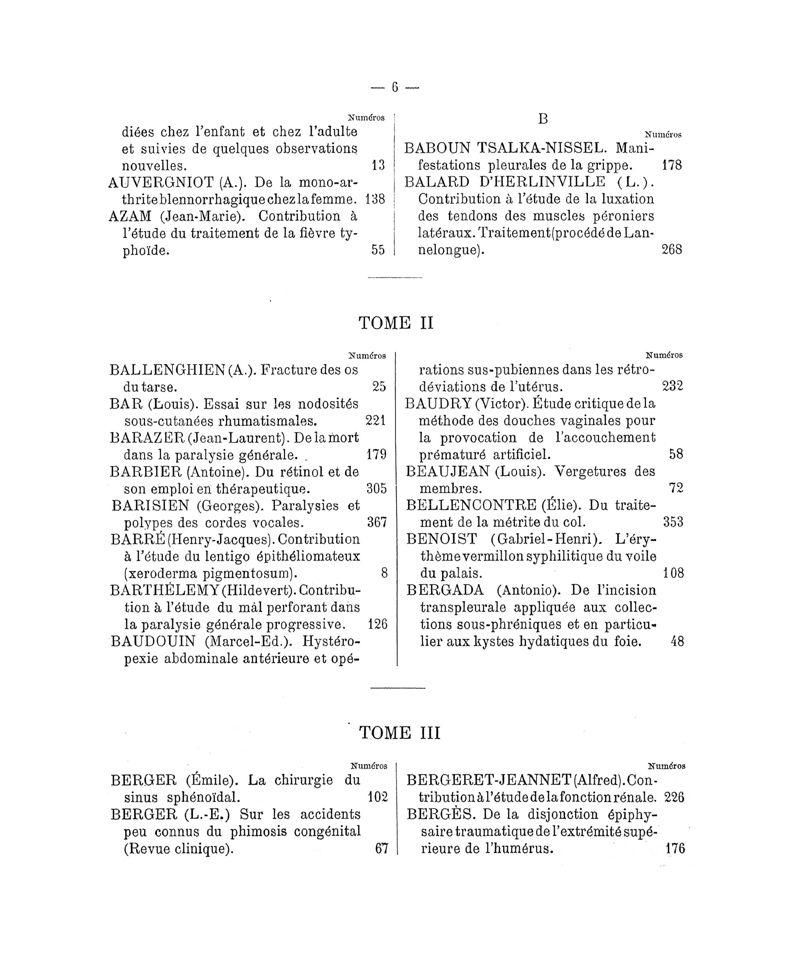 Tables (la première des noms des auteurs, et la seconde des matières) des thèses soutenues à la Faculté de Médecine de Paris, pendant l'année scolaire 1889-1890