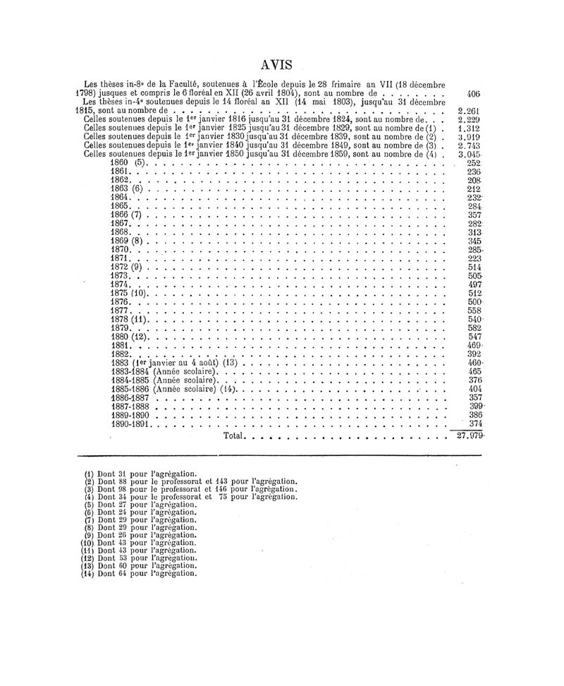 Tables (la première des noms des auteurs, et la seconde des matières) des thèses soutenues à la Faculté de Médecine de Paris, pendant l'année scolaire 1890-1891