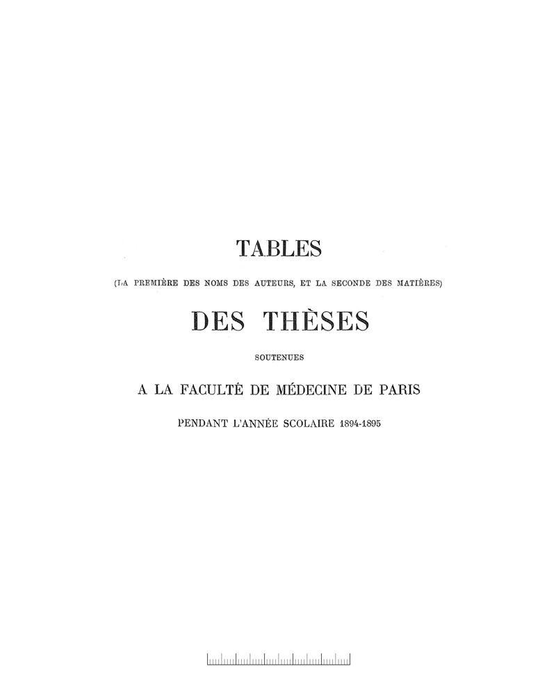 Tables (la première des noms des auteurs, et la seconde des matières) des thèses soutenues à la Faculté de Médecine de Paris, pendant l'année scolaire 1894-1895