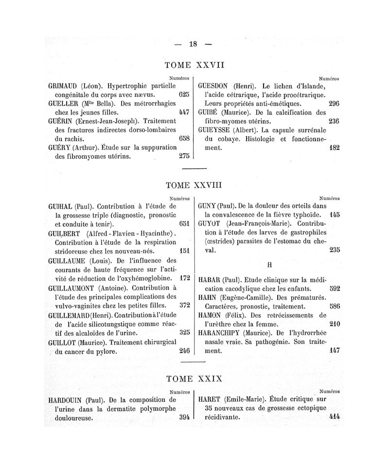 Tables (la première des noms des auteurs, et la seconde des matières) des thèses soutenues à la Faculté de Médecine de Paris, pendant l'année scolaire 1900-1901