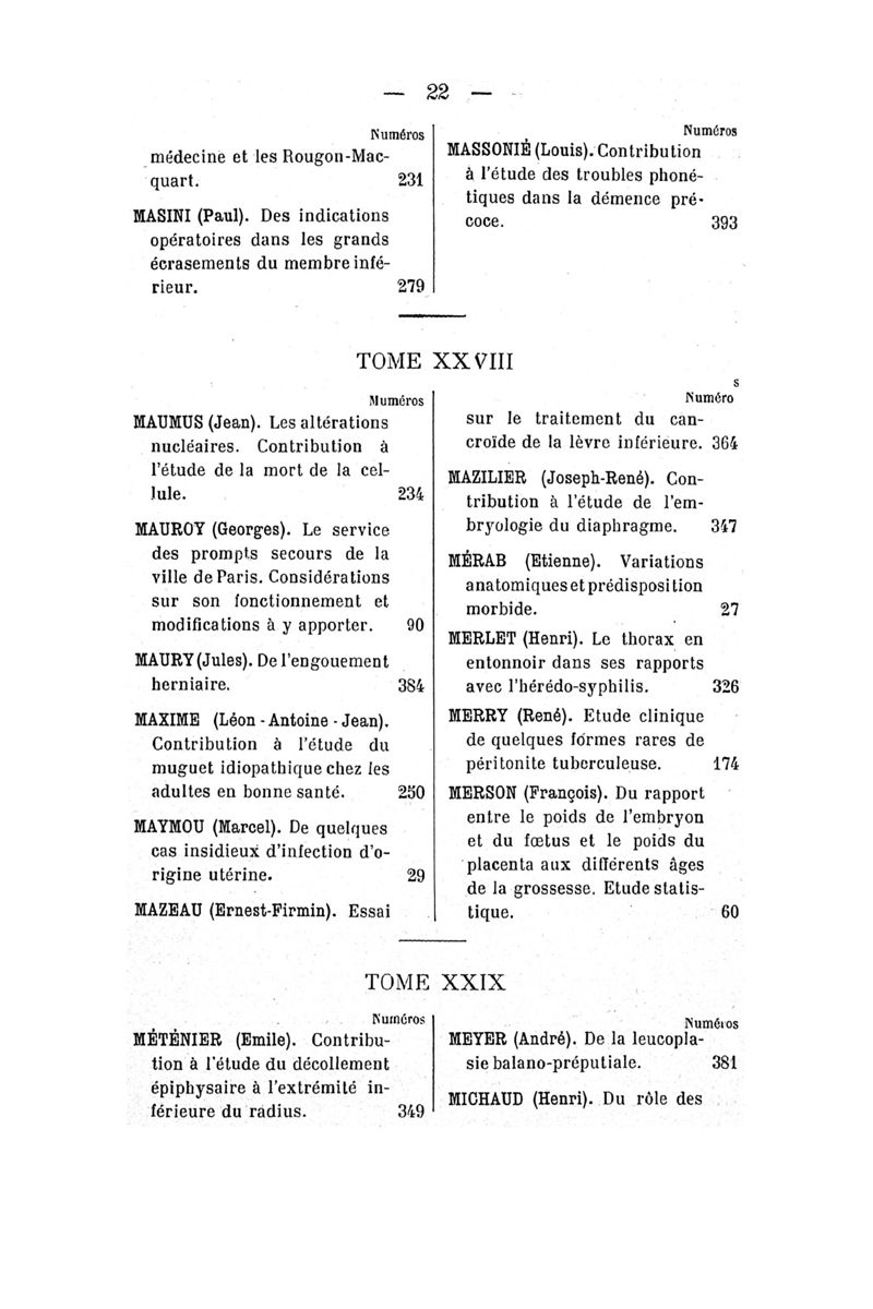 Tables (la première des noms des auteurs, et la seconde des matières) des thèses soutenues à la Faculté de Médecine de Paris, pendant l'année scolaire 1906-1907