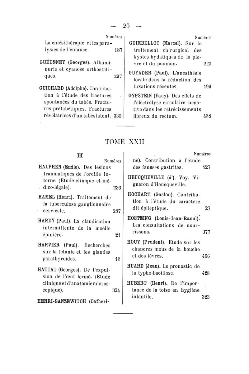 Tables (la première des noms des auteurs, et la seconde des matières) des thèses soutenues à la Faculté de Médecine de Paris, pendant l'année scolaire 1909-1910