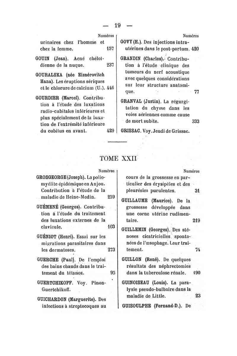 Tables (la première des noms des auteurs, et la seconde des matières) des thèses soutenues à la Faculté de Médecine de Paris, pendant l'année scolaire 1910-1911
