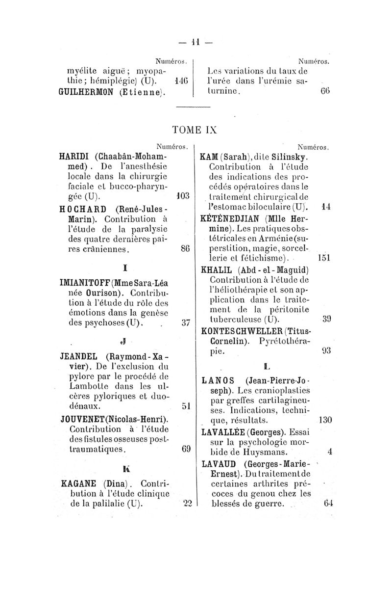 Tables (la première des noms des auteurs, et la seconde des matières) des thèses soutenues à la Faculté de Médecine de Paris, pendant l'année scolaire 1917-1918
