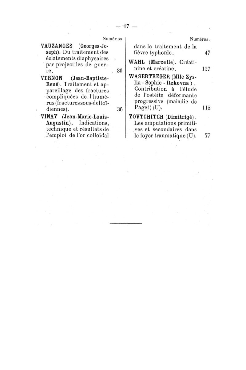 Tables (la première des noms des auteurs, et la seconde des matières) des thèses soutenues à la Faculté de Médecine de Paris, pendant l'année scolaire 1917-1918