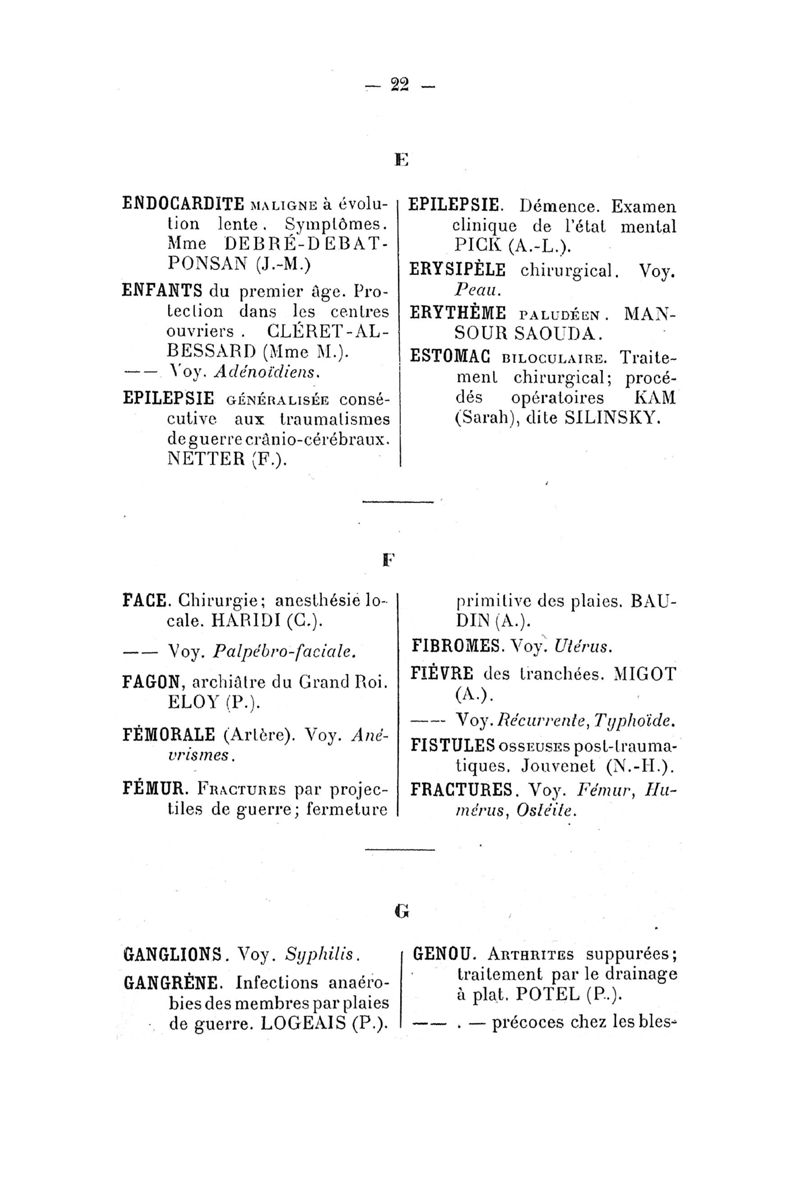 Tables (la première des noms des auteurs, et la seconde des matières) des thèses soutenues à la Faculté de Médecine de Paris, pendant l'année scolaire 1917-1918