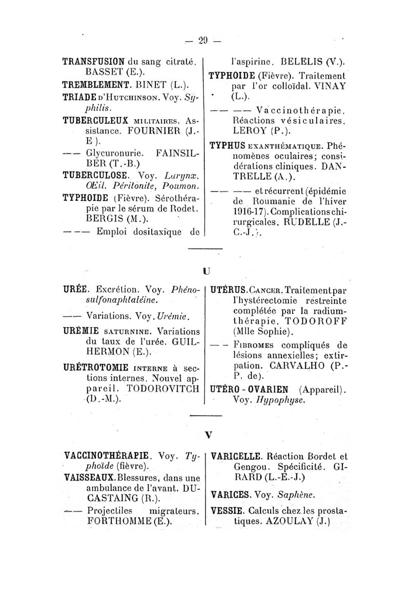 Tables (la première des noms des auteurs, et la seconde des matières) des thèses soutenues à la Faculté de Médecine de Paris, pendant l'année scolaire 1917-1918