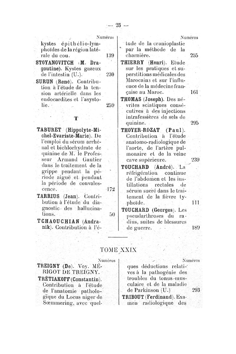Tables (la première des noms des auteurs, et la seconde des matières) des thèses soutenues à la Faculté de Médecine de Paris, pendant l'année scolaire 1918-1919