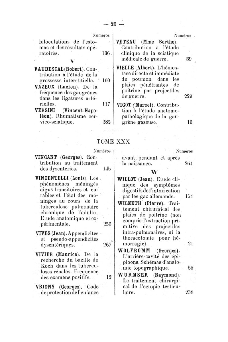 Tables (la première des noms des auteurs, et la seconde des matières) des thèses soutenues à la Faculté de Médecine de Paris, pendant l'année scolaire 1918-1919